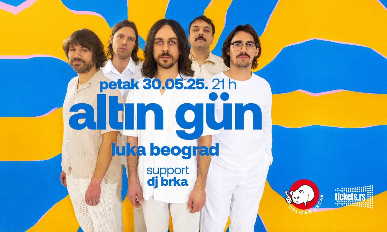 Psihodelične rok verzije tradicionalnih turskih narodnih pesama umotane u plesne pop aranžmane, ali i hipnotički šou, čine Altin Gün jednom od najoriginalnijih pojava na svetskoj sceni. Atipični predstavnici anadolskog roka oživljavaju duhove prošlosti kroz savremenu produkciju, koja dovodi do katarze. Njihova smela fuzija predstavlja muziku budućnosti, onu koja ne poznaje okvire, granice, niti univerzume. Slobodu u izražaju osvešćuju na svih pet albuma: “On”,” Gece”, “Yol”,”Âlem”, “Aşk”, ali ponajviše na nastupima uživo, jer najčešći komentar na njih jeste: ektaza. Altin Gün u prevodu znači ,,zlatni dan”. Baš takav će i biti u Luci Beograd 30. maja 2025.